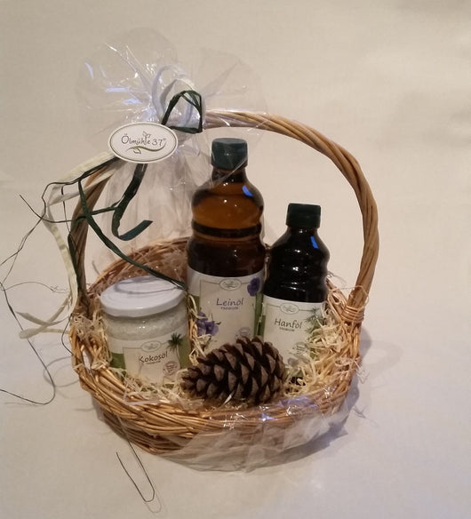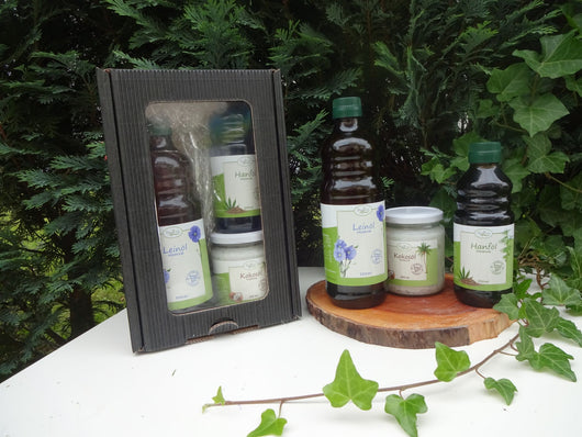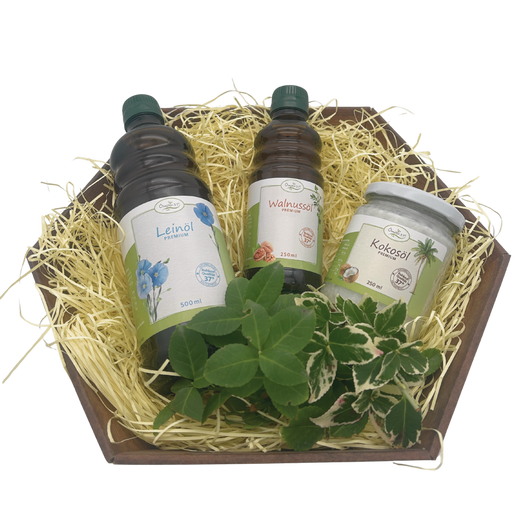 Geschenkpaket Öle (Leinöl 250ml / Walnussöl 100ml / Kokosöl 250ml)